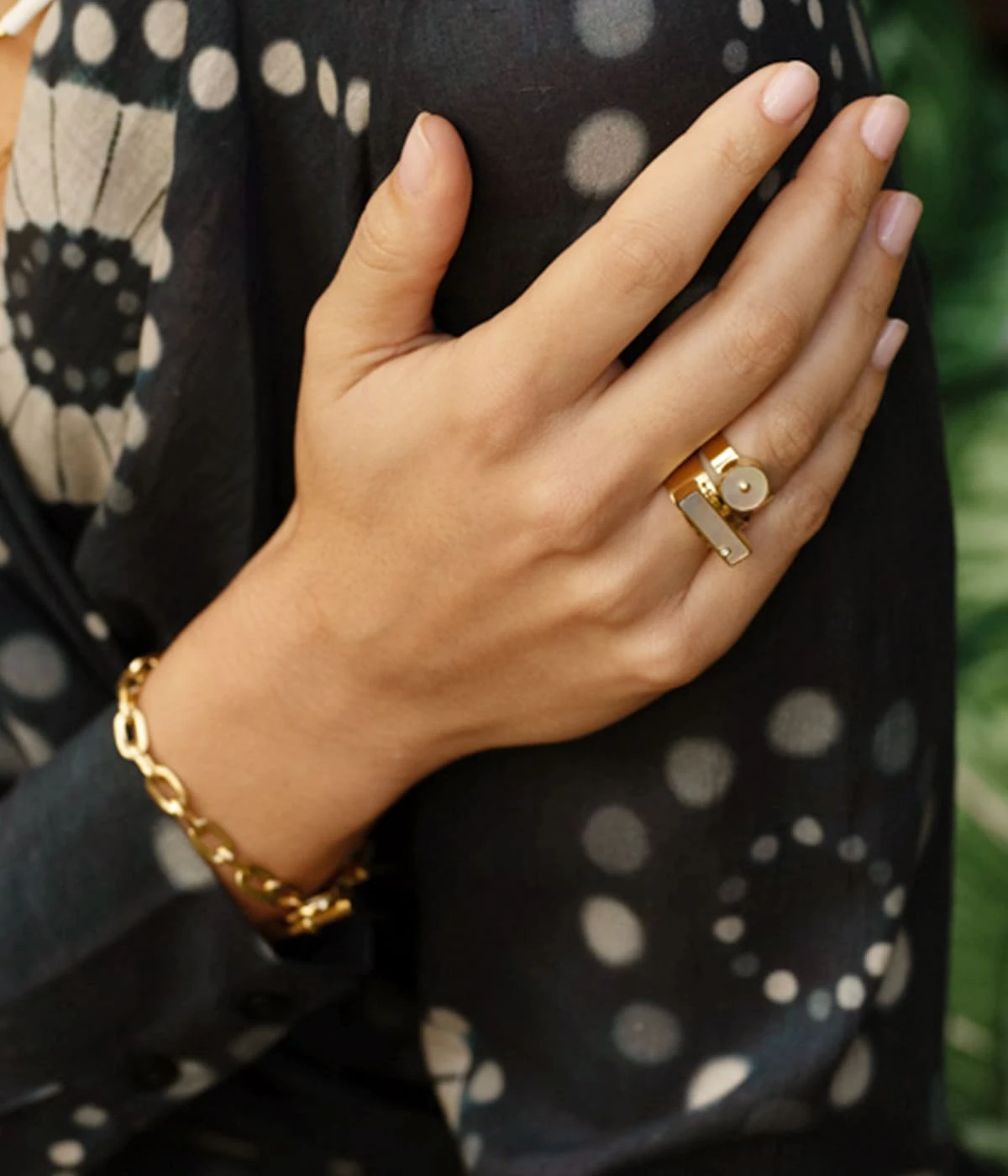 Cette pièce sertie d’un zirconium est parfaite pour apporter une touche de couleur à votre tenue.
