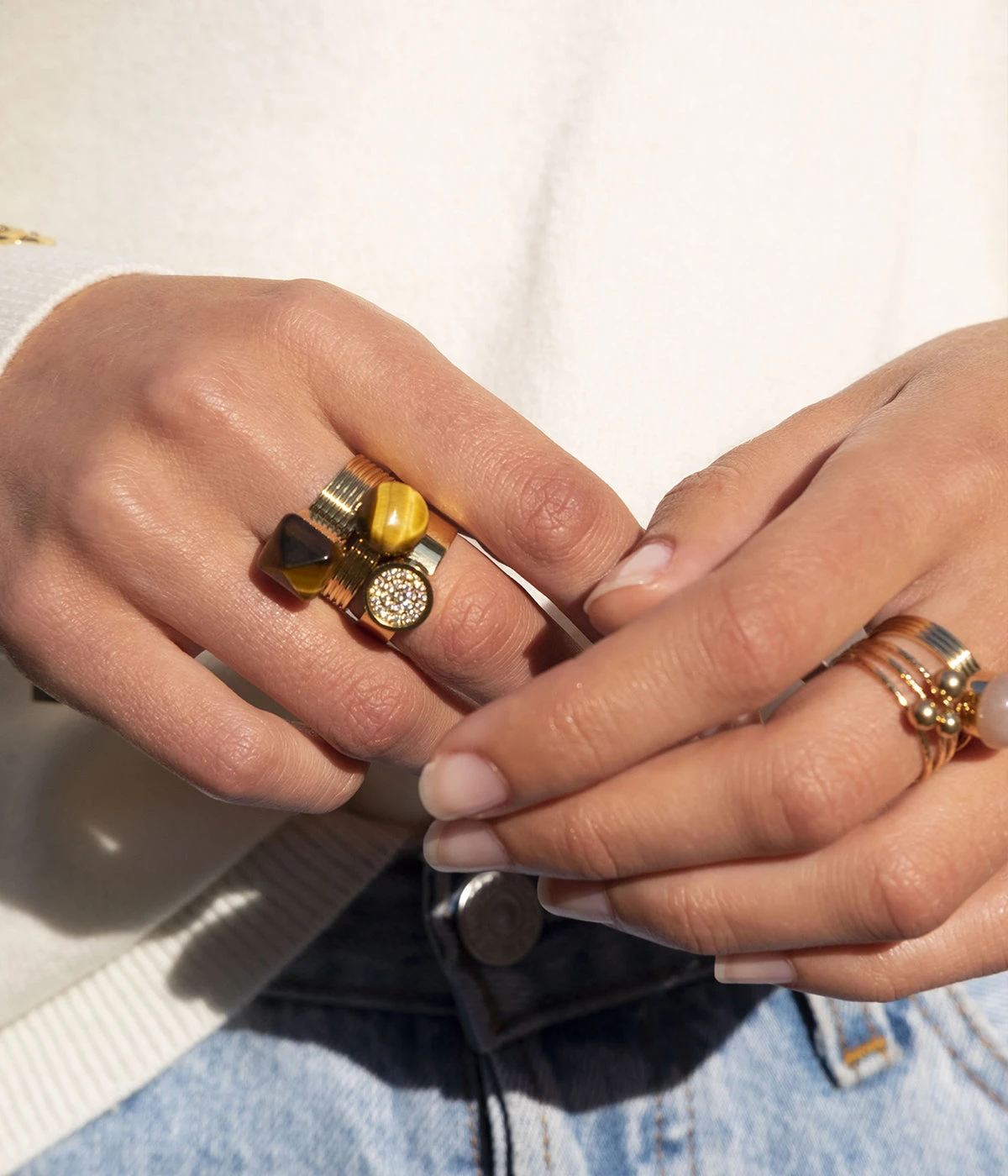 - Déclinée en boucles d’oreilles, bracelet et collier