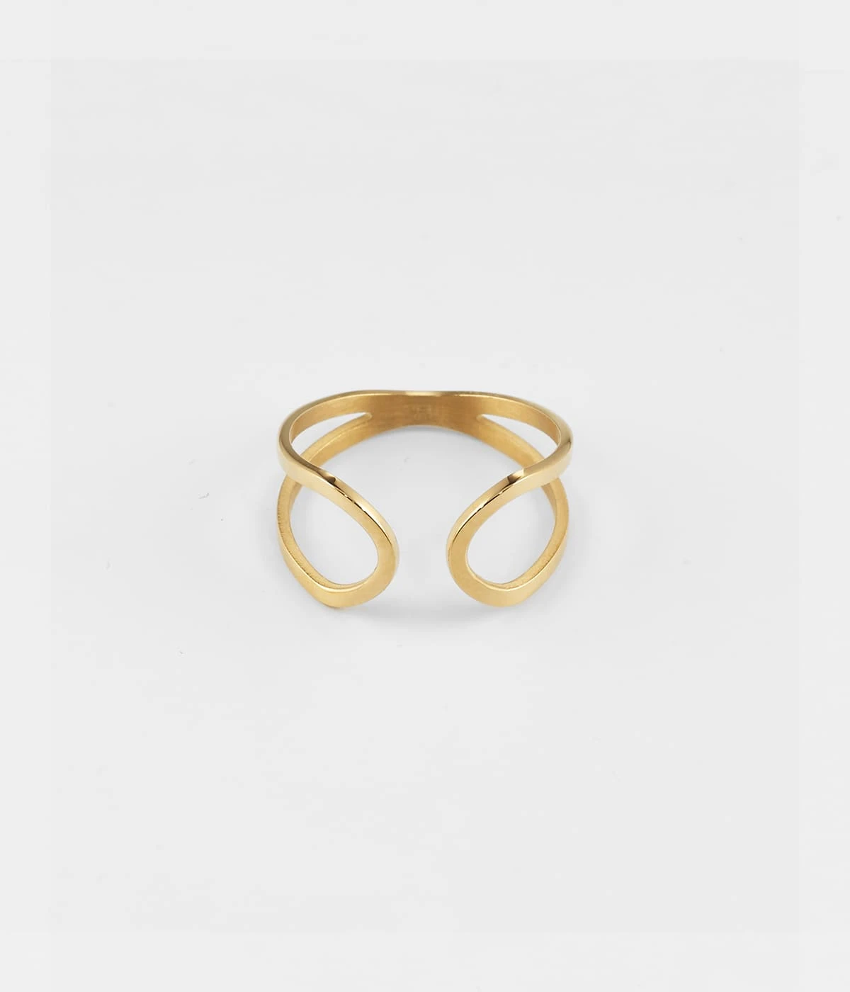 Simplicité absolue pour cette bague en acier uni ou doré à l’or fin dont le design ressemble au symbole de l’infini.