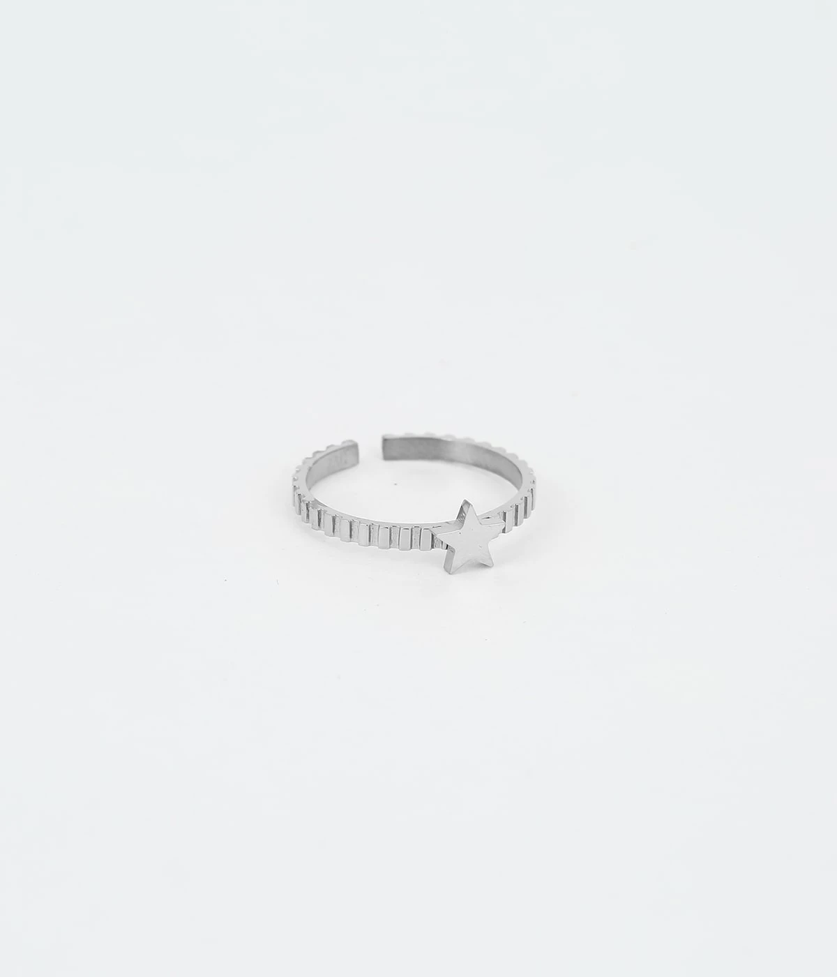 Bague ajustable en acier uni ou doré à l’or fin avec en son centre une étoile.
