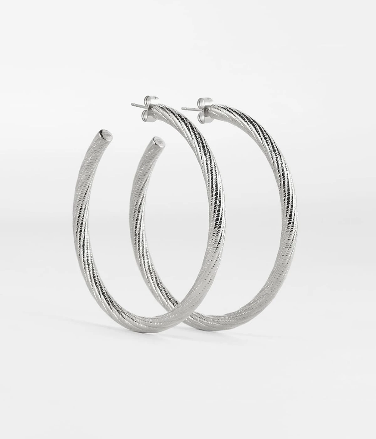 Grandes boucles d’oreilles créoles en acier uni ou doré à l’or fin.