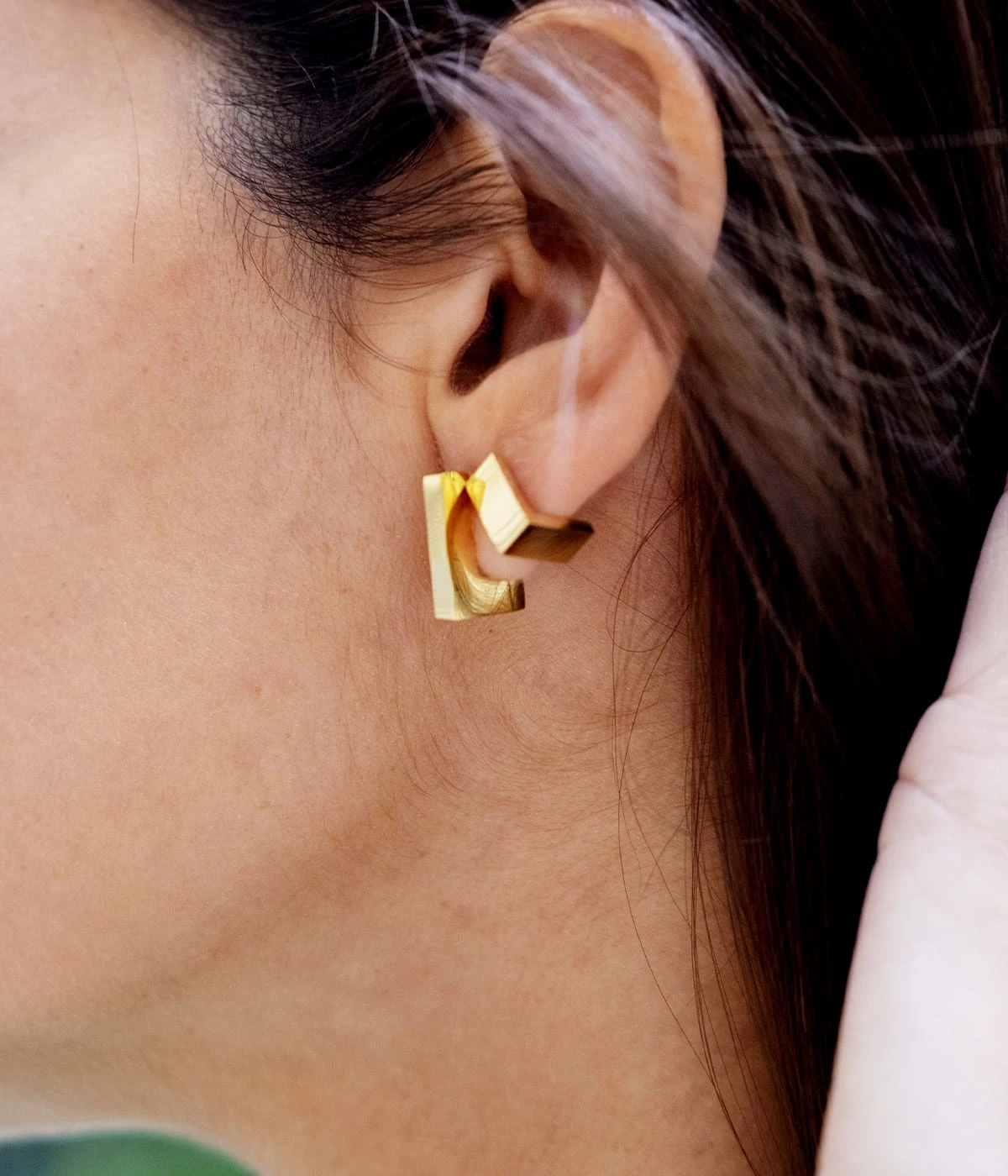 Boucles d’oreilles en acier uni ou doré à l’or fin de forme géométrique.