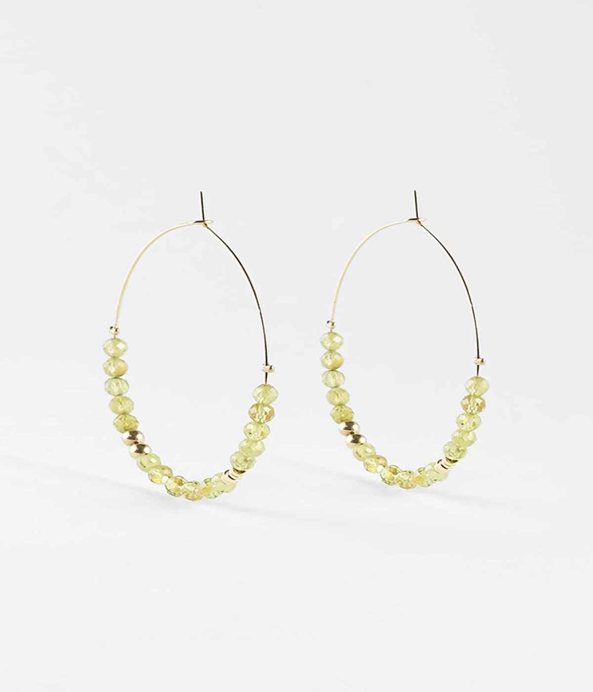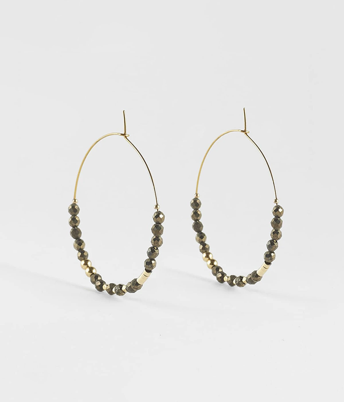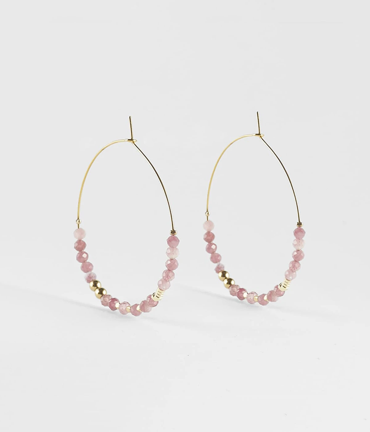 Boucles d’oreilles créoles en acier doré à l’or fin, affublées d’une rangée de pierres fines de couleur.