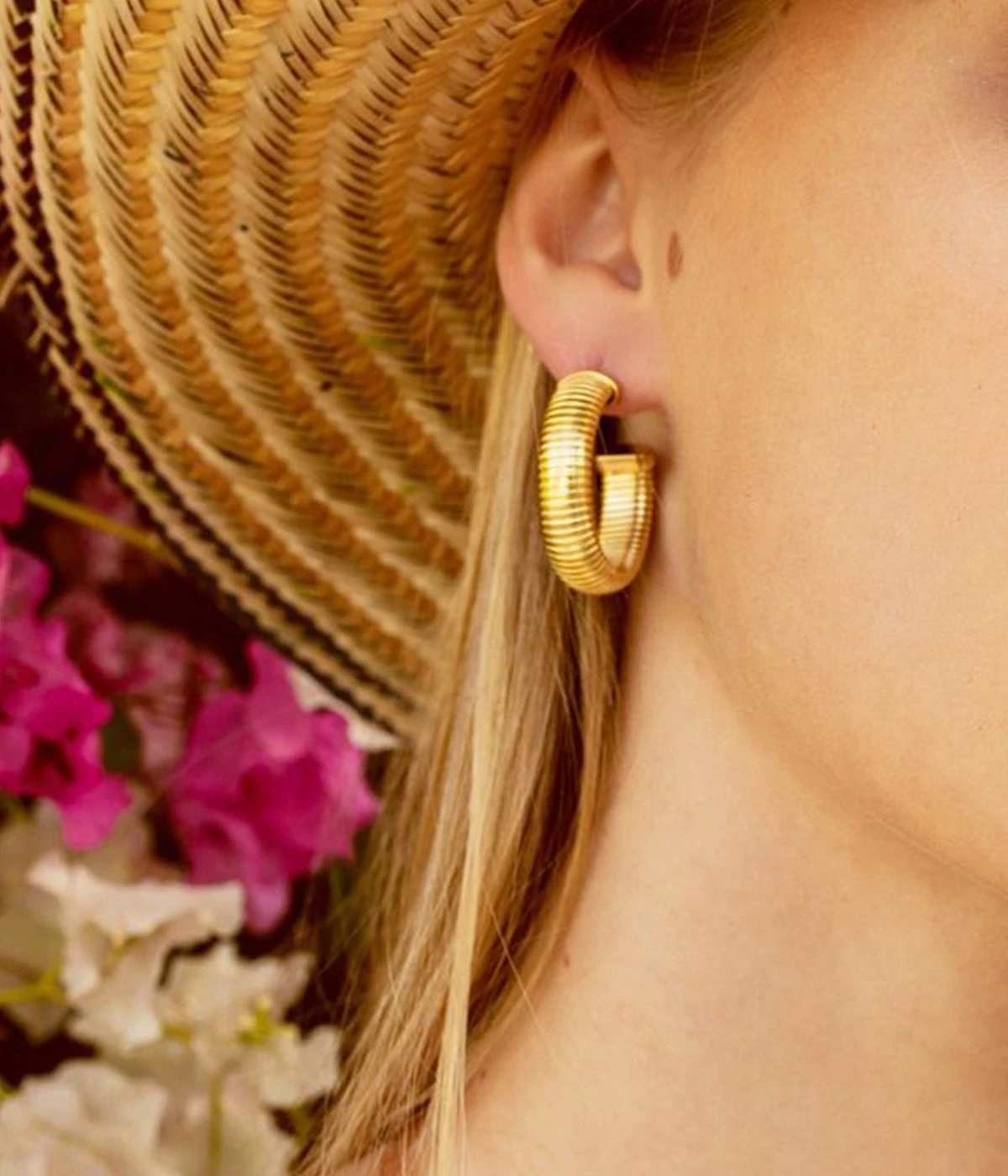 Boucles d’oreilles créoles en acier doré à l’or fin.