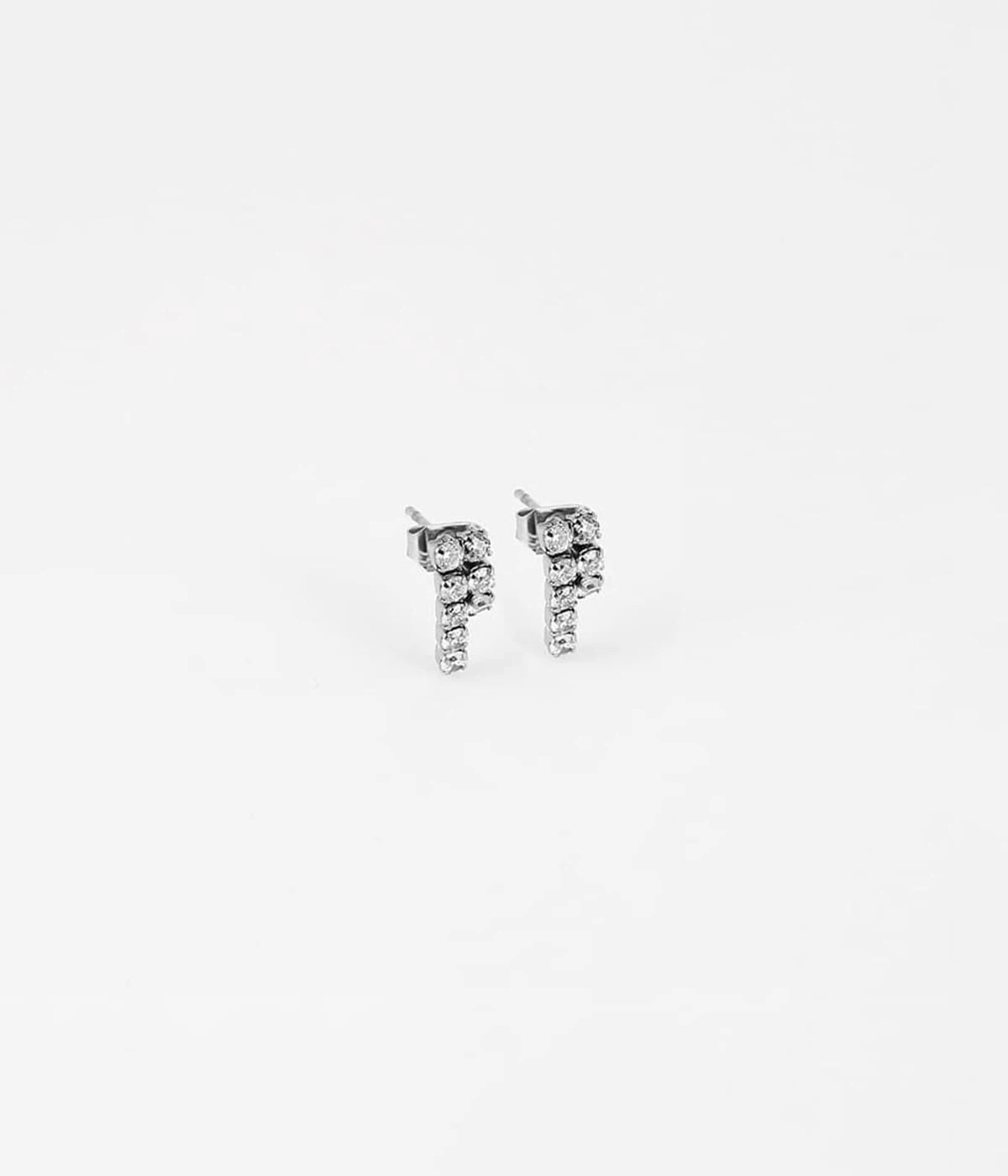 Boucles d’oreilles en acier uni ou doré à l’or fin présentant deux rangées asymétriques de zirconiums en sertissage carré.