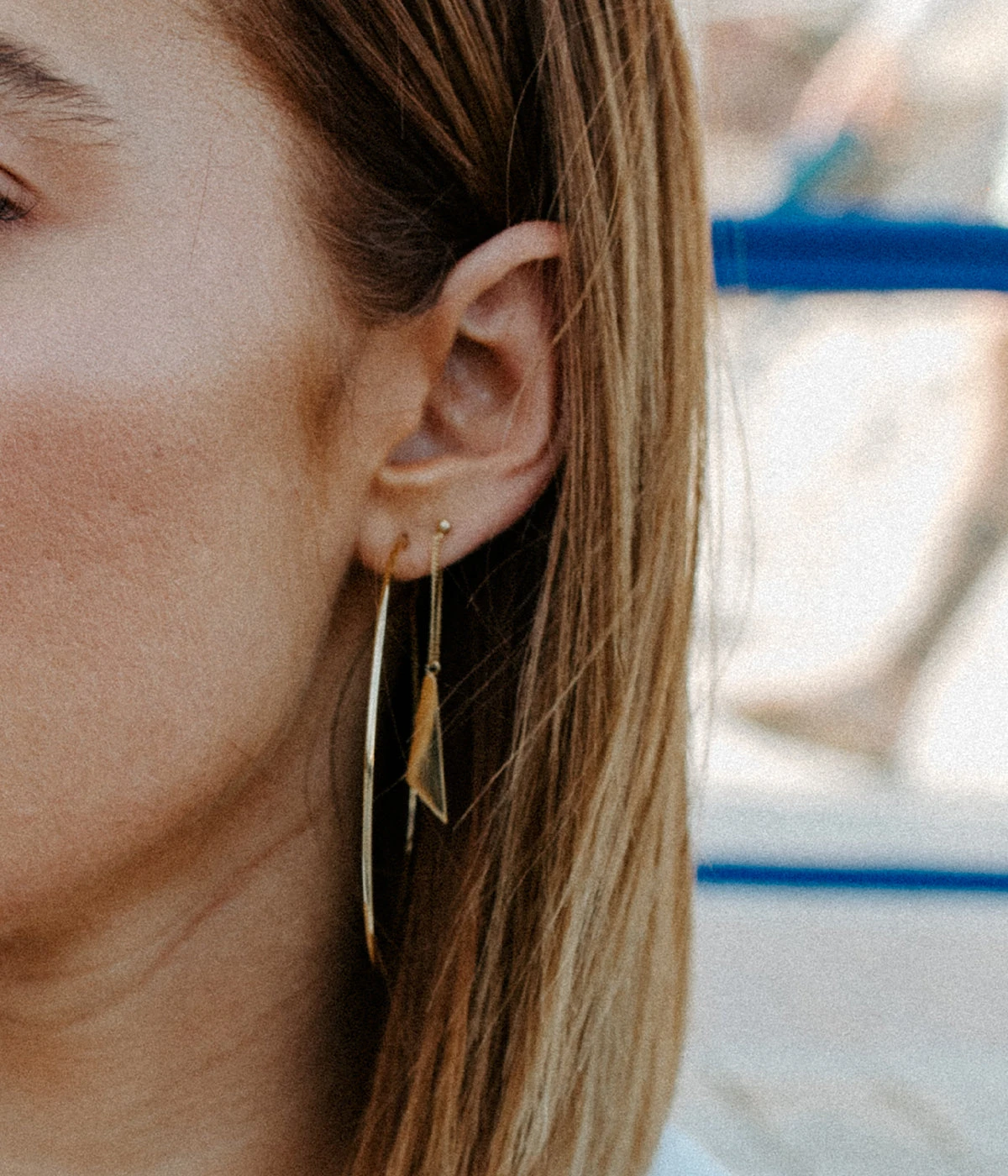 Boucles d’oreilles en acier uni ou doré à l’or fin sur lesquelles une forme géométrique est reliée à la base et au fermoir papillon.