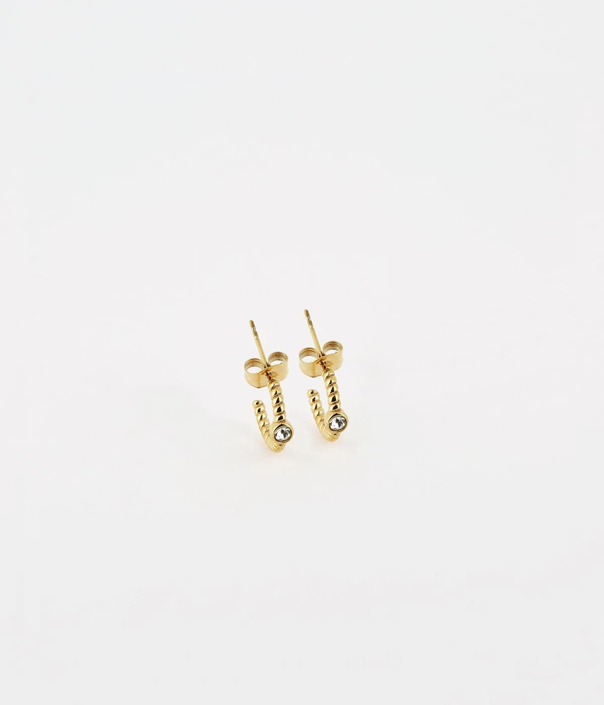 Mini créoles torsadées en acier uni ou doré à l’or fin avec en son centre un zirconium en serti clos.