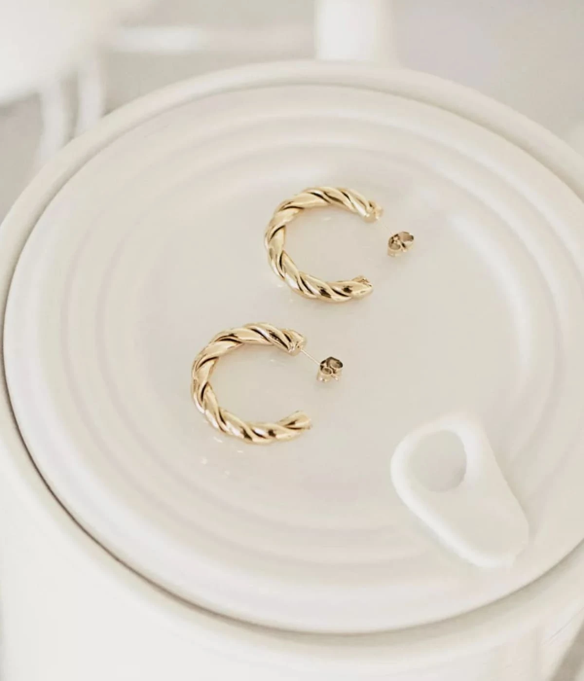 Boucles d’oreilles créoles en acier torsadé uni ou doré à l’or fin.