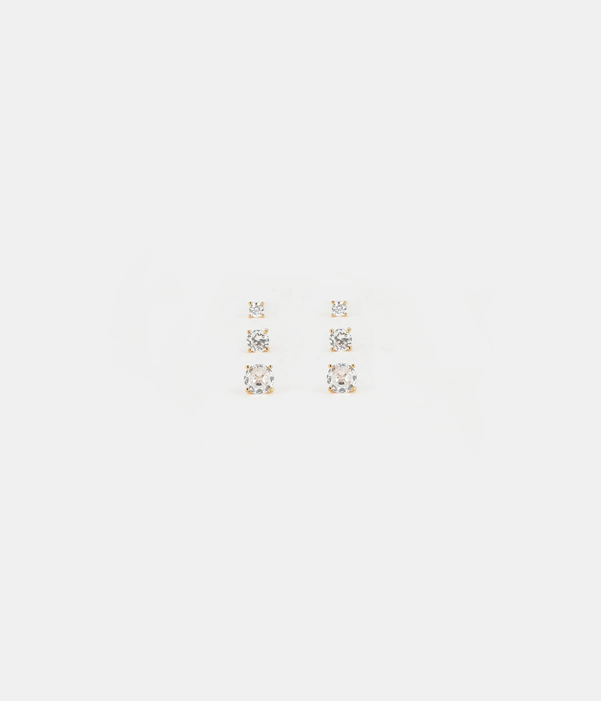Boucles d’oreilles puces en acier uni ou doré à l’or fin serti d’un zirconium.