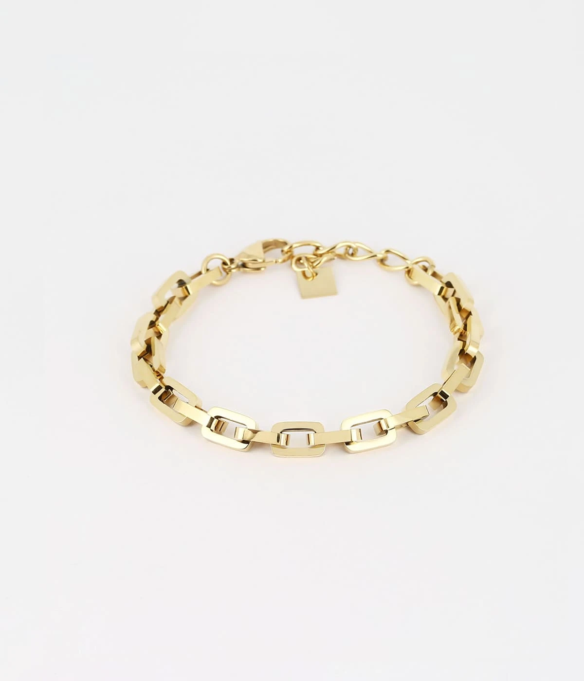 Bracelet maillons en acier uni ou doré à l’or fin.