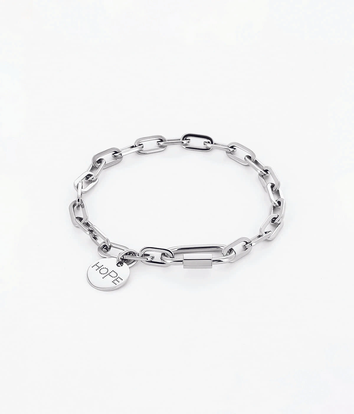 Bracelet maillons en acier uni ou doré à l’or fin.