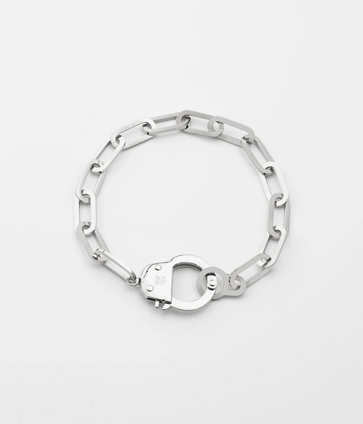 Bracelet maillons en acier uni ou dorĂ© Ă l’or fin terminĂ© d’un fermoir « menotte ».