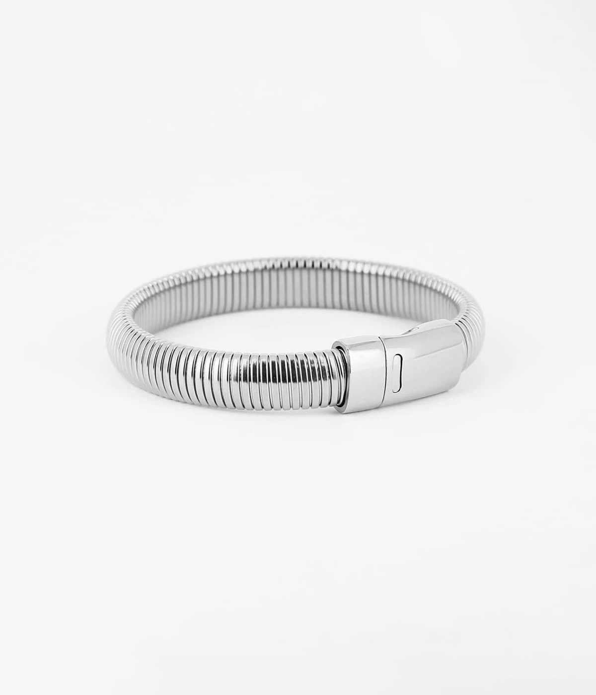 Bracelet jonc aimanté en acier uni ou doré à l’or fin imitant un accordéon.