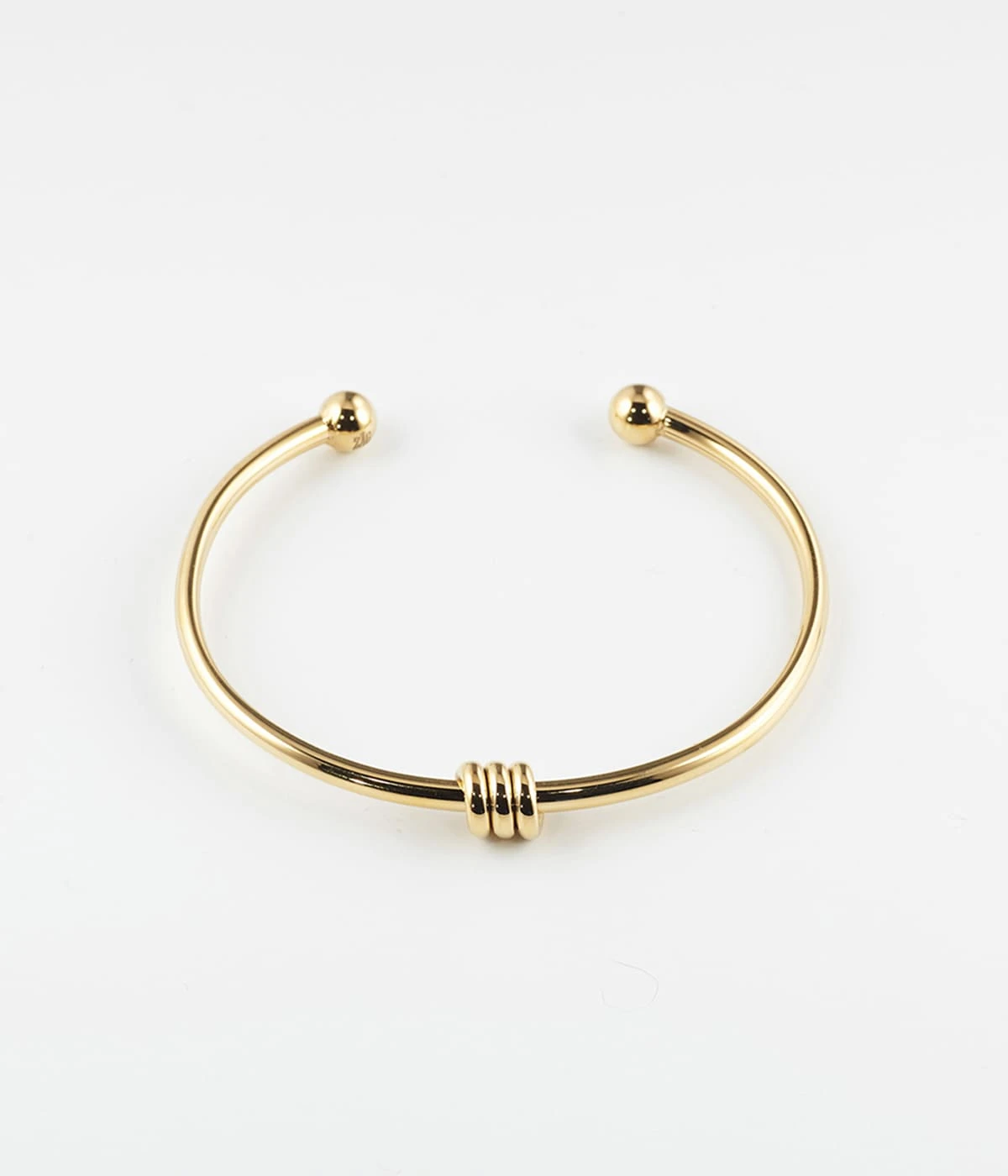 Bracelet jonc en acier uni ou doré à l’or fin agrémenté en son centre d’une torsade de métal dorée.