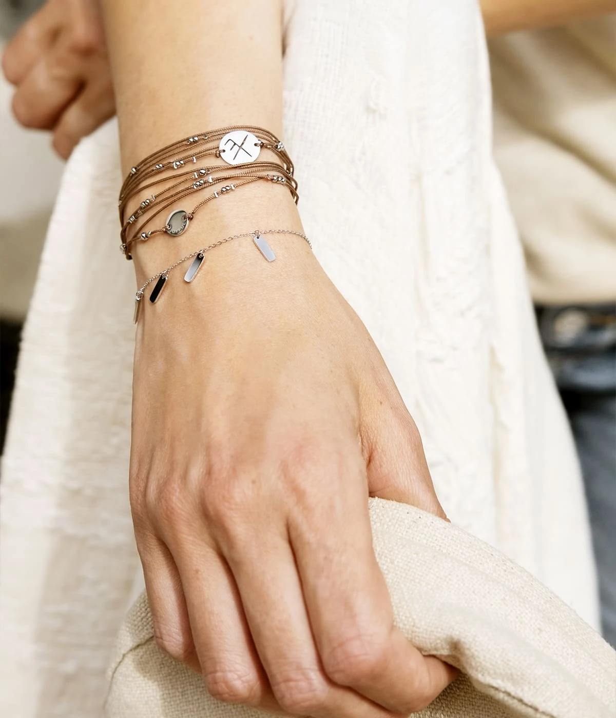 Ils se portent mélangés à d’autres bracelets de nos collections et se placent aussi bien sur un poignet d’homme que de femme.