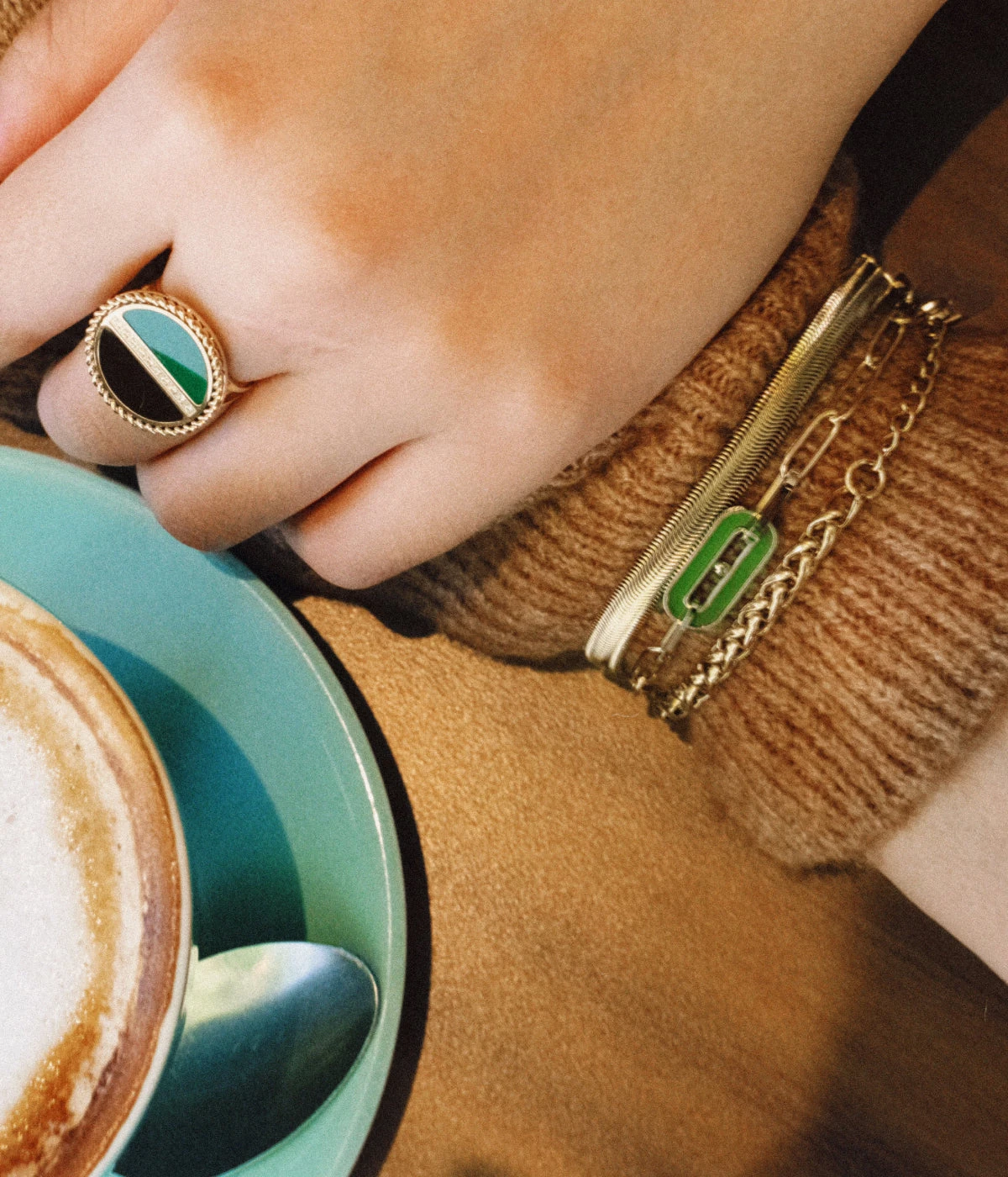 Une pièce à l’allure chic et raffinée, très jolie porté seul ou accumulé avec d’autres bracelet de nos collections.