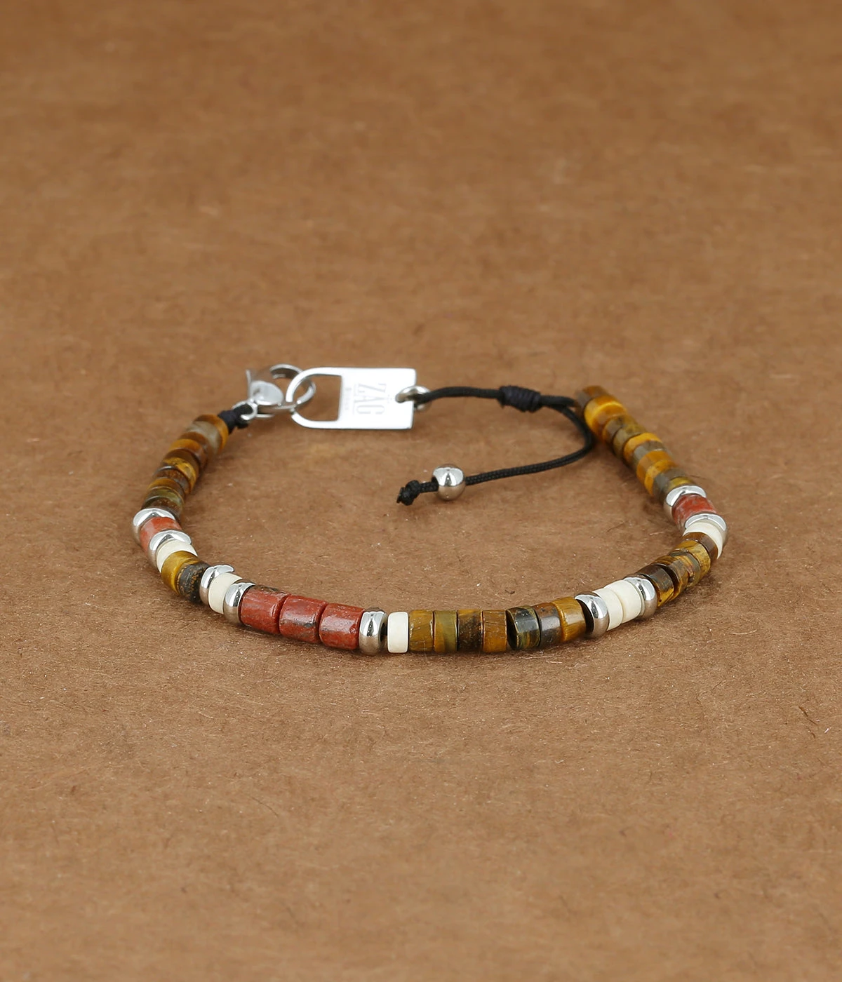Bracelet ajustable sur lequel des pierres naturelles sont enfilées.