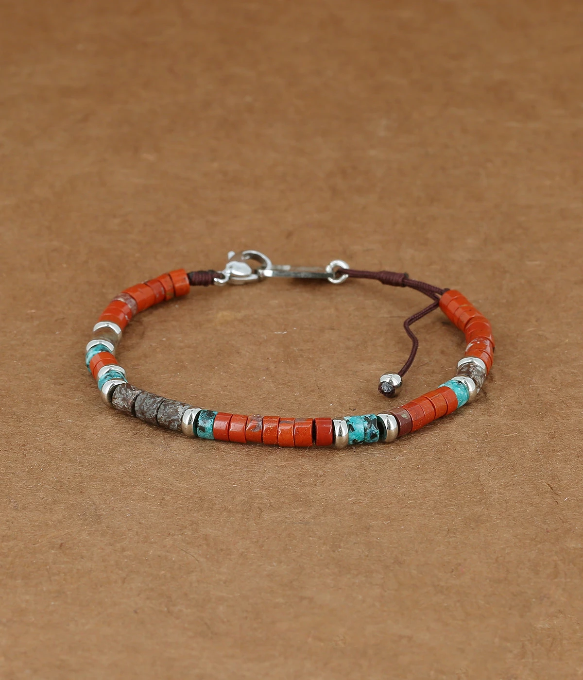 Il apporte une touche de couleur sur le poignet et se porte aussi bien seul qu’accumulé avec d’autres bracelets de notre collection homme.