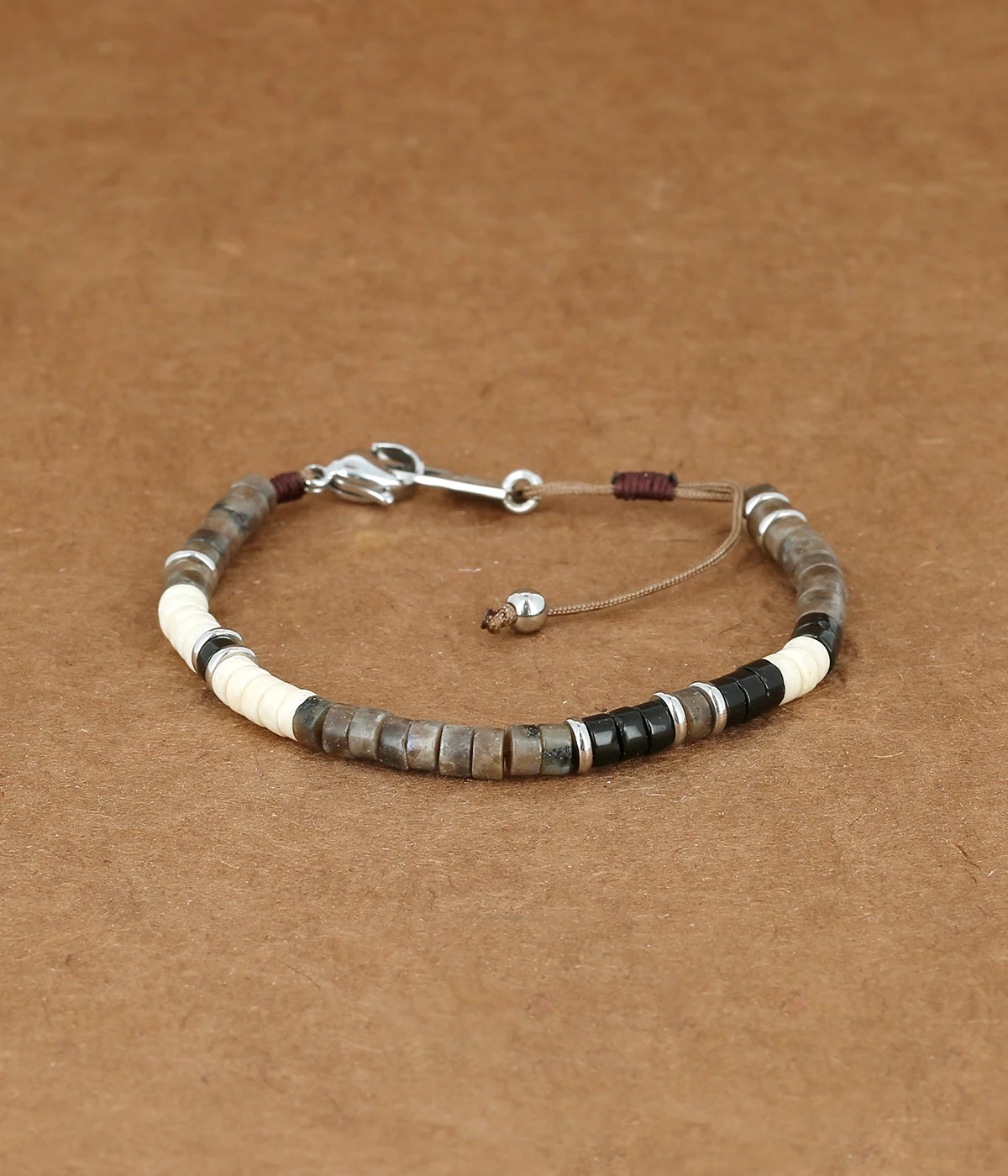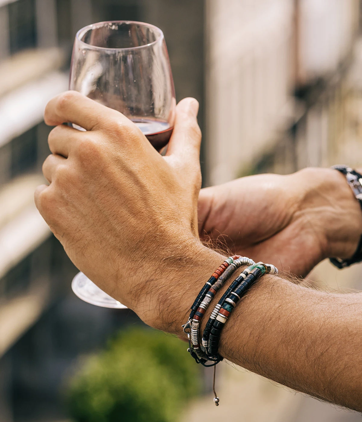 Très coloré sur le poignet, nous conseillons de le porter accumulé avec d’autres bracelets de notre collection pour homme.
