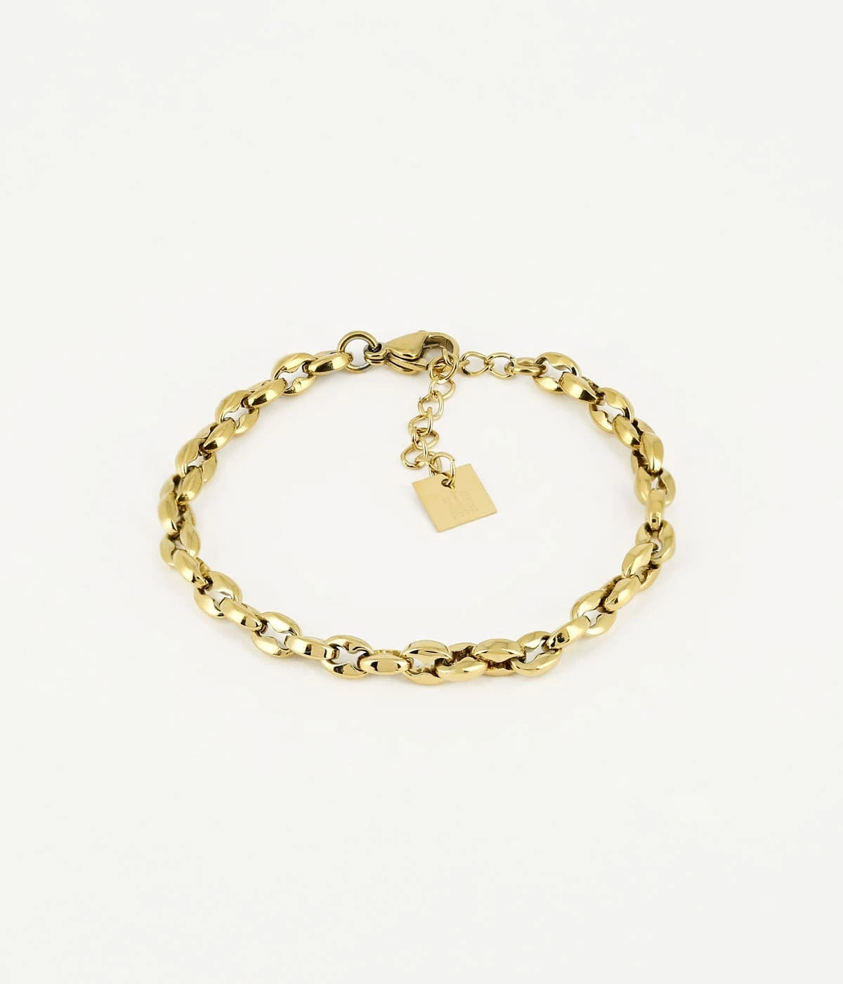 Bracelet à maillons en acier uni ou doré à l’or fin.