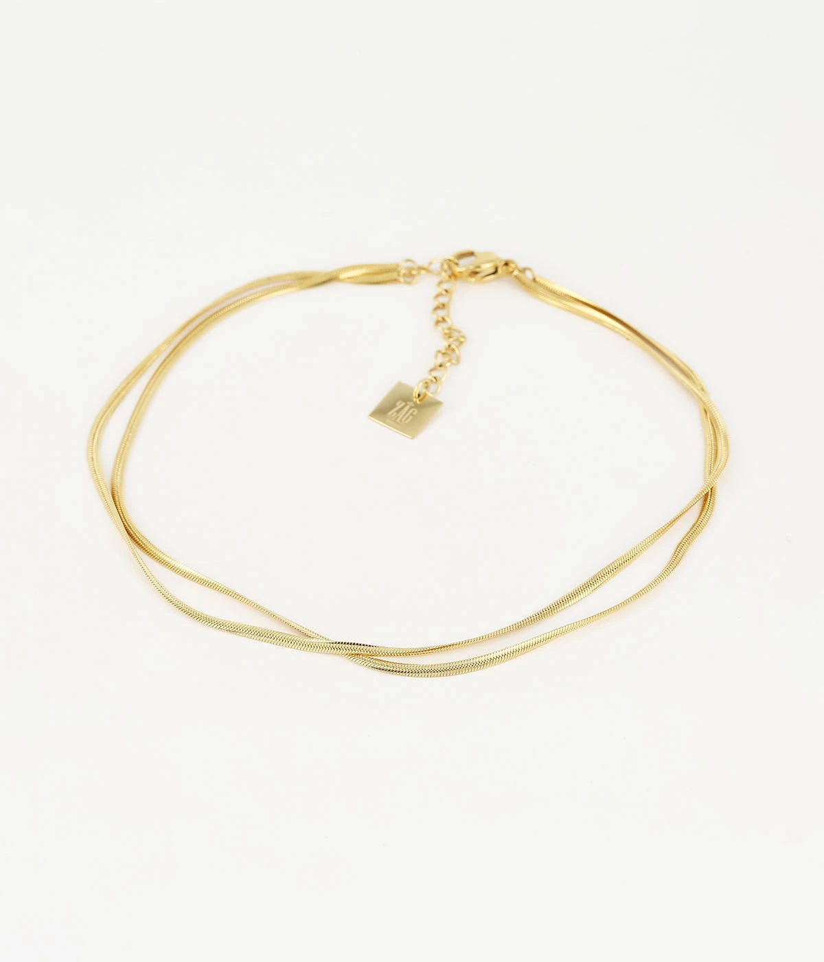 Double chaîne de cheville en acier uni ou doré à l’or fin.
