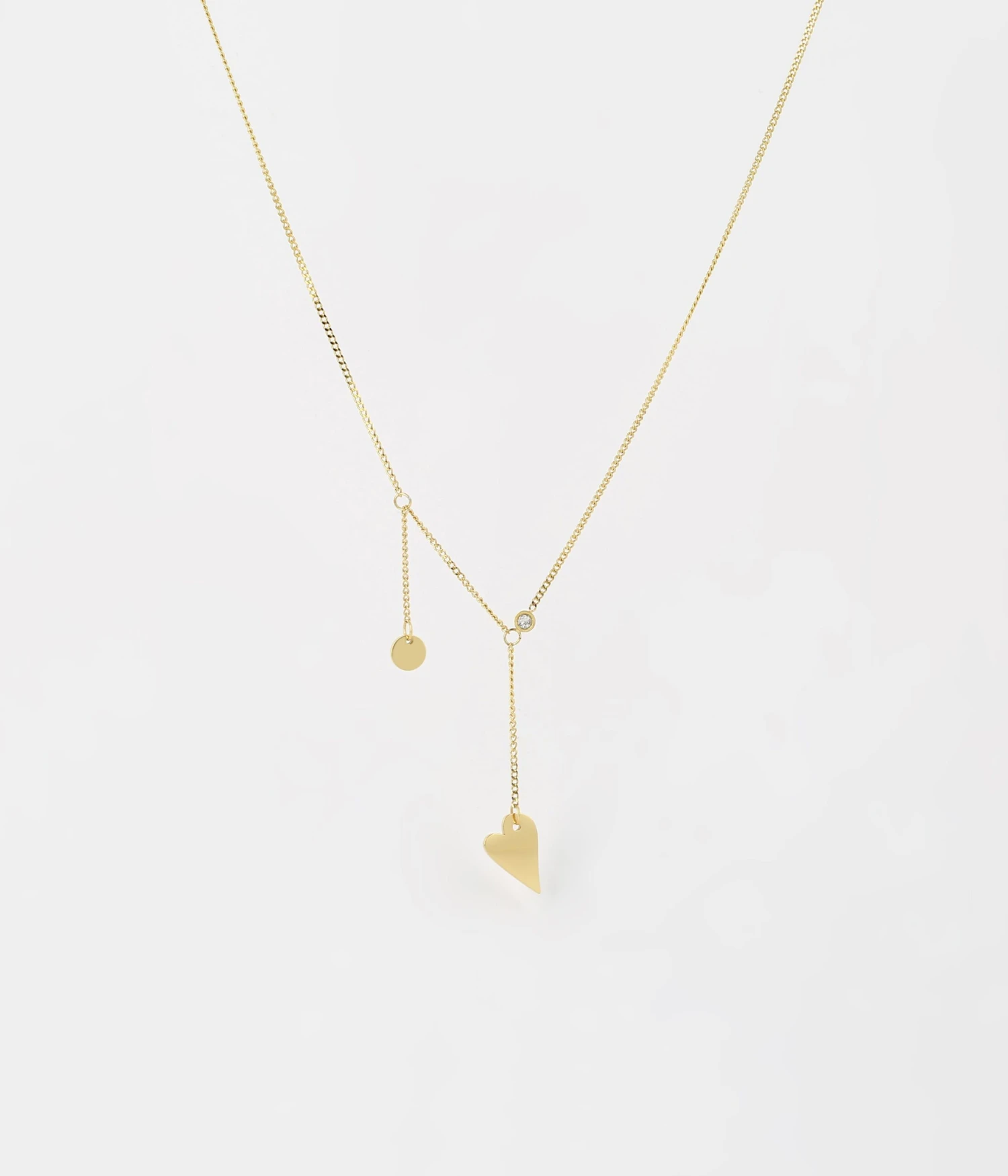 Collier en acier uni ou doré à l’or fin sur lequel sont suspendus des pendentifs de forme géométrique.