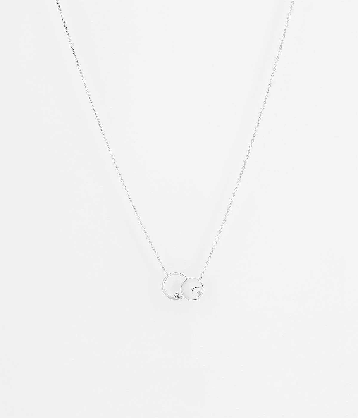 Collier en acier uni ou doré à l’or fin sur lequel deux cercles sont attachés.