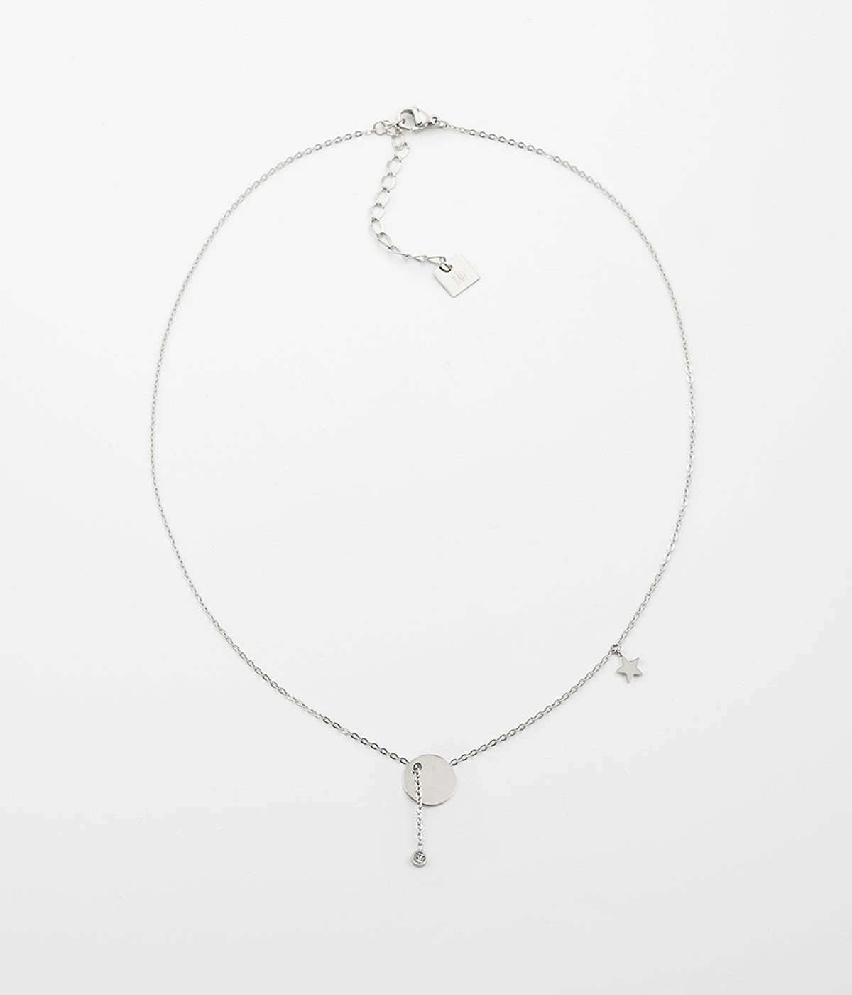 Une petite étoile porte-bonheur et un petit cristal blanc en serti clos bougent sur le cou avec malice.