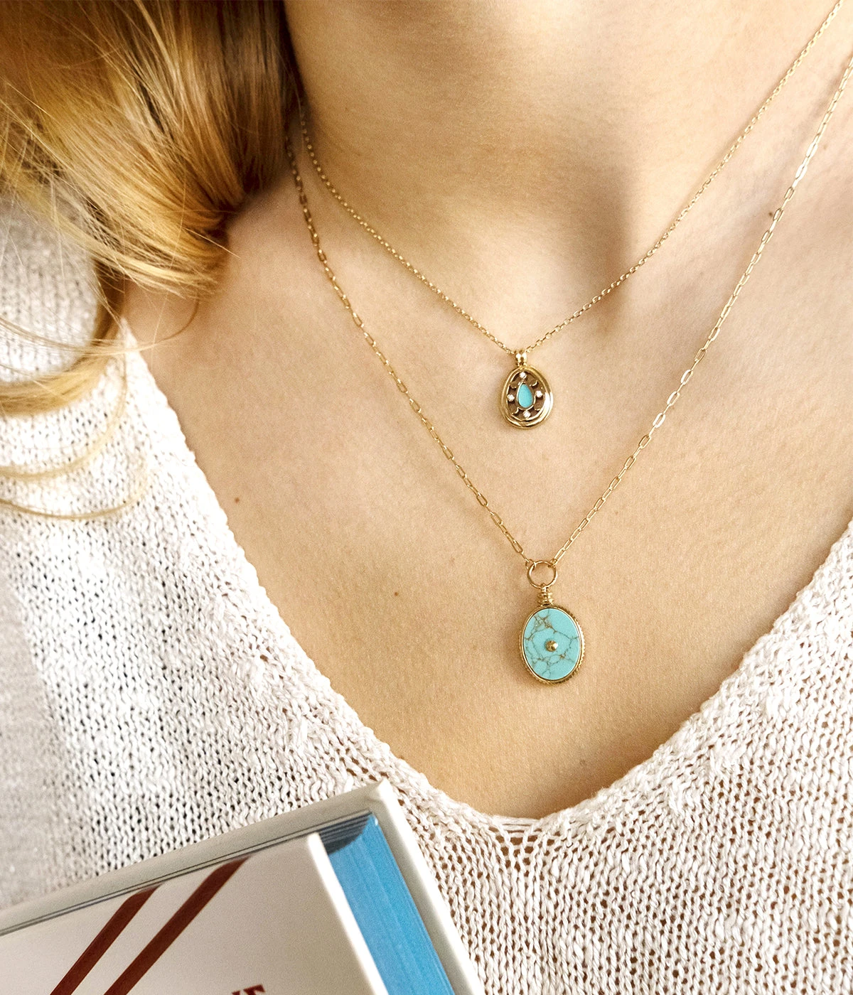 Ce bijou coloré tombe parfaitement dans le décolleté et nous conseillons de le porter en accumulation avec d’autres colliers de nos collections.