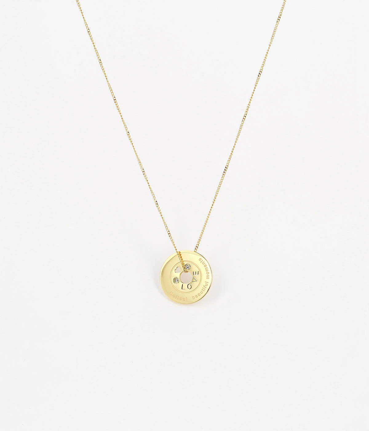 Collier en acier doré à l’or fin. Ce collier ce compose d’une médaille gravée « Collect beautiful moments » et « LOVE ».
