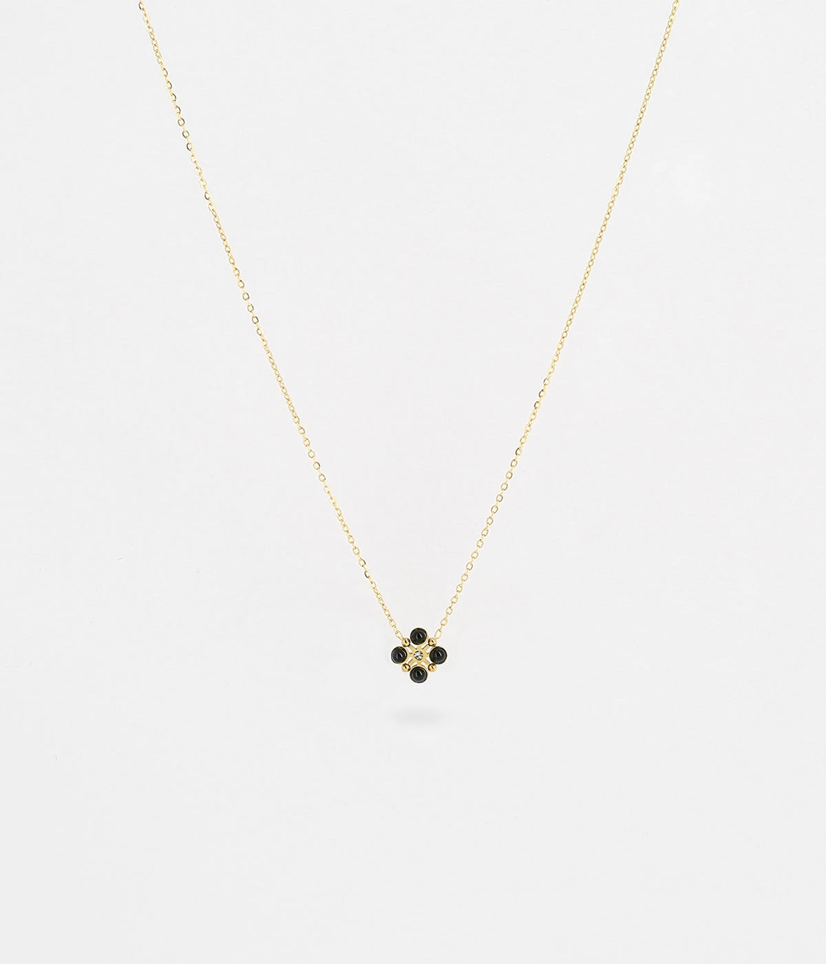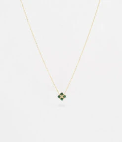 Collier en acier doré à l’or fin sur lequel est suspendu un motif fleur en pierres naturelles et serti d’un zirconium en son centre.