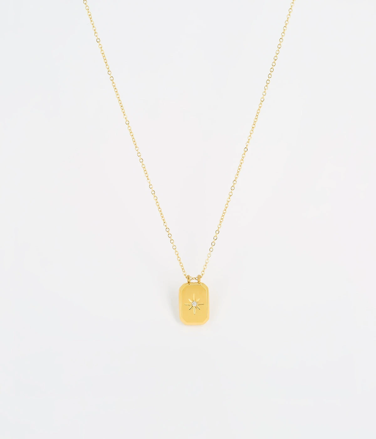 Collier medium en acier uni ou doré à l’or fin sur lequel est suspendu un pendentif gravé d’une étoile sertie en son centre d’un zirconium.
