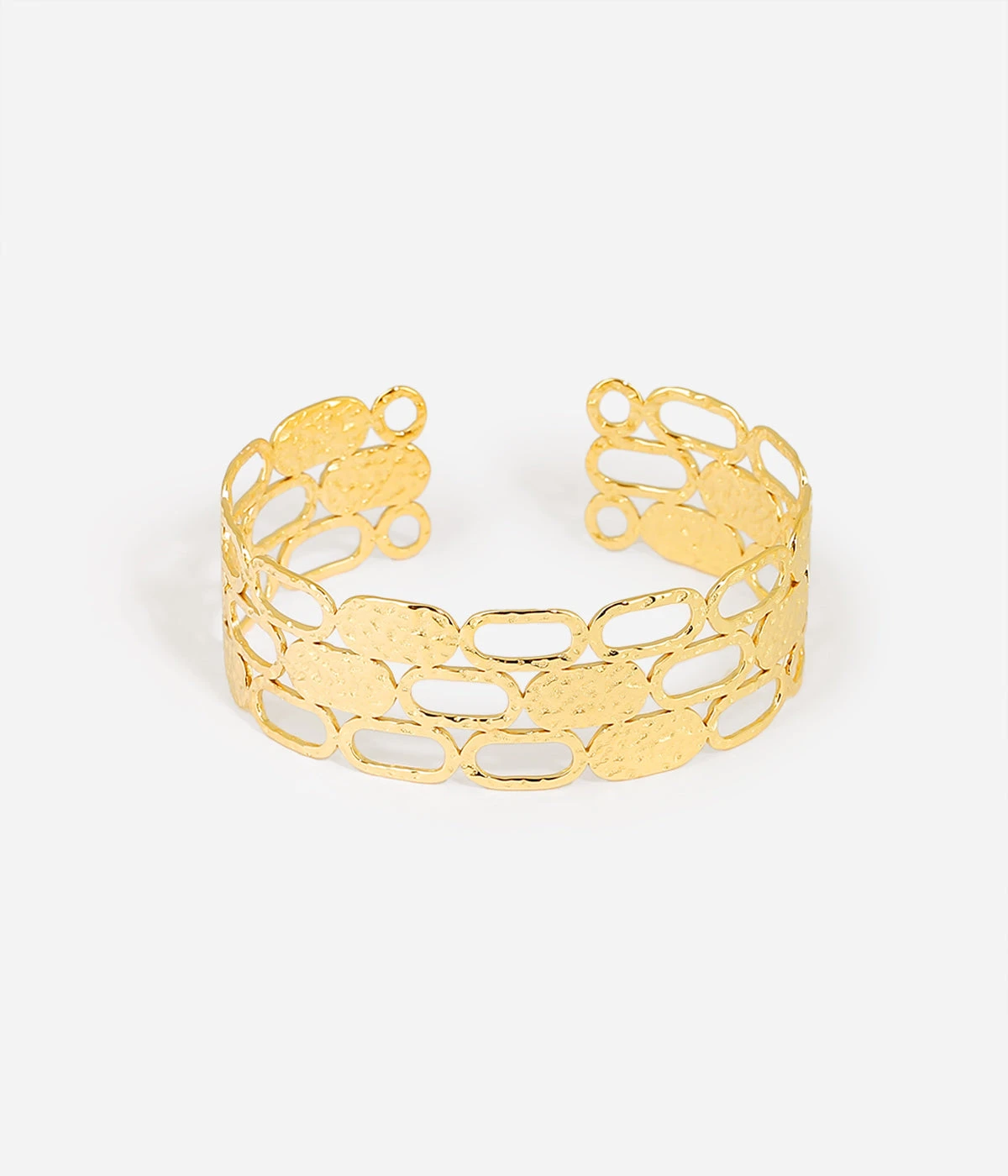 Ce jonc a beaucoup d’allure et habille sans effort. Il peut également se porter sur le bras pour un effet bohème.