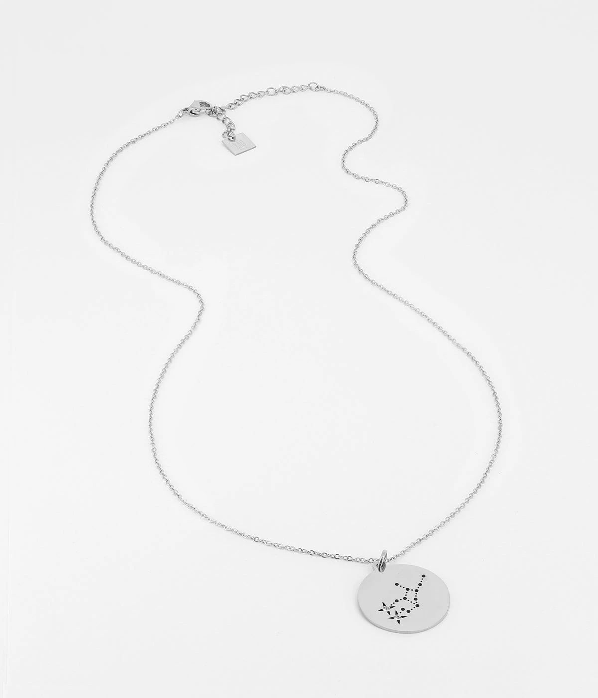 Collier en acier uni ou doré à l’or fin sur lequel est suspendu un pendentif gravé de la constellation représentant le signe astrologique Vierge.